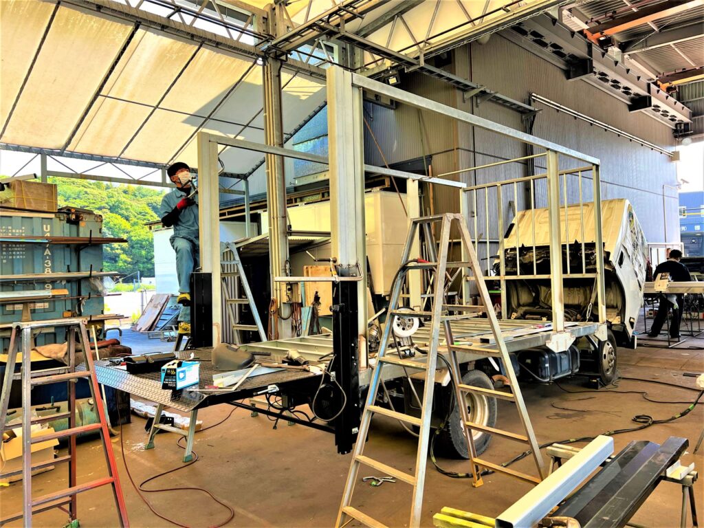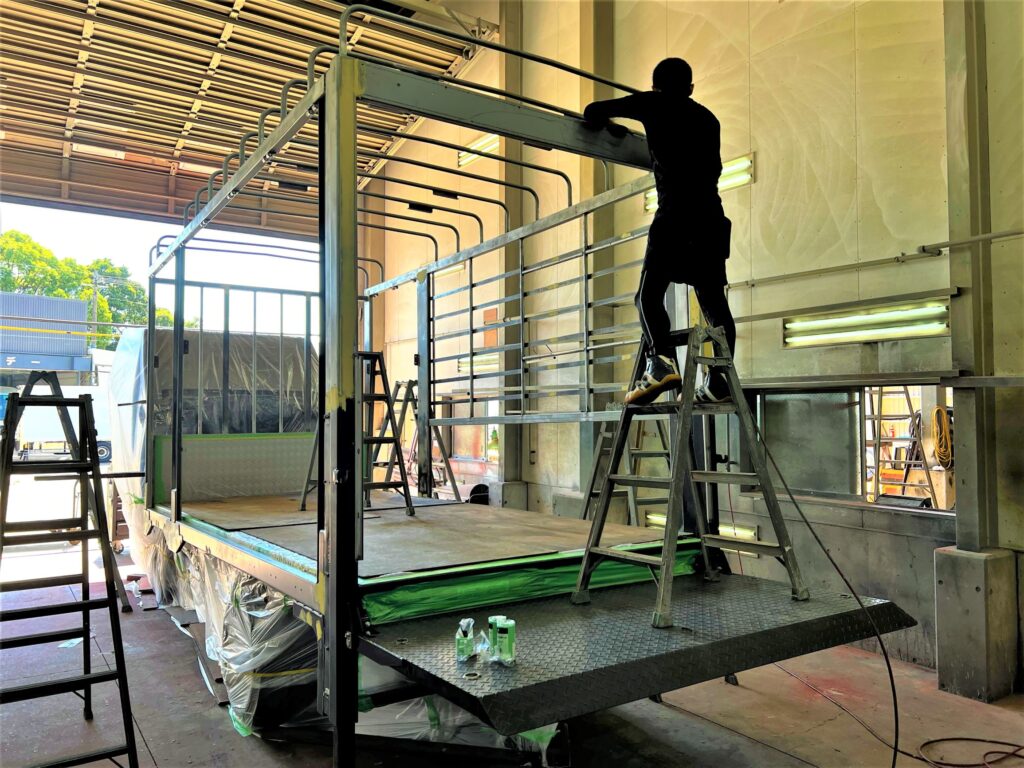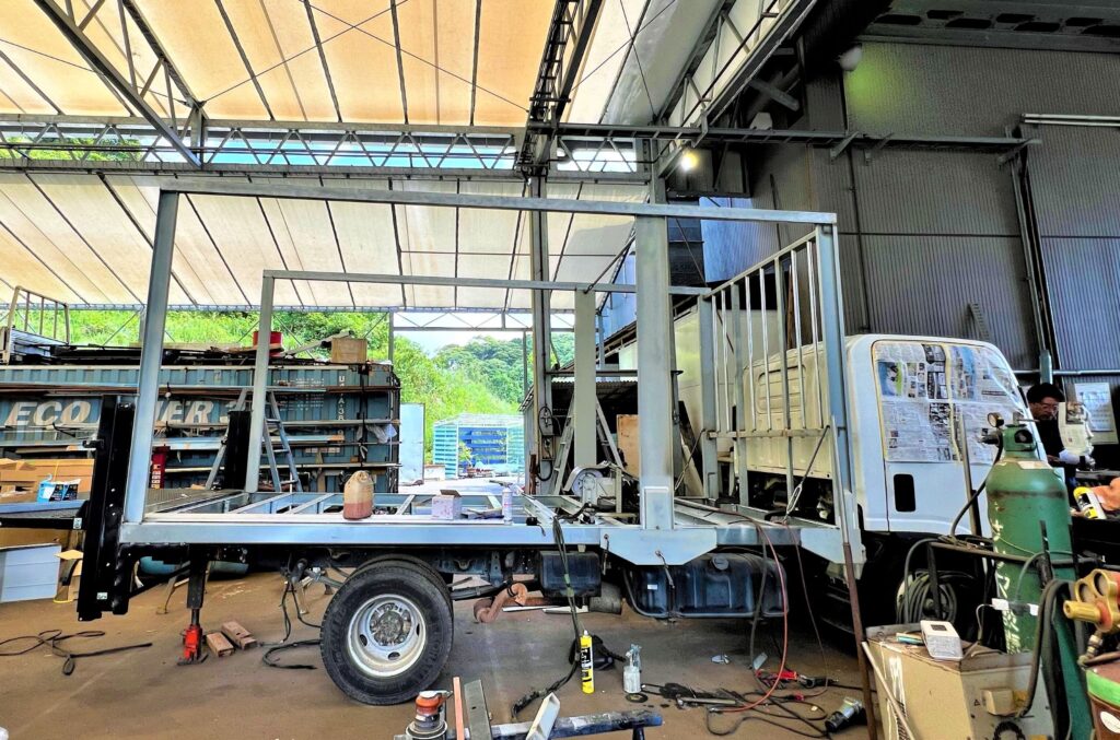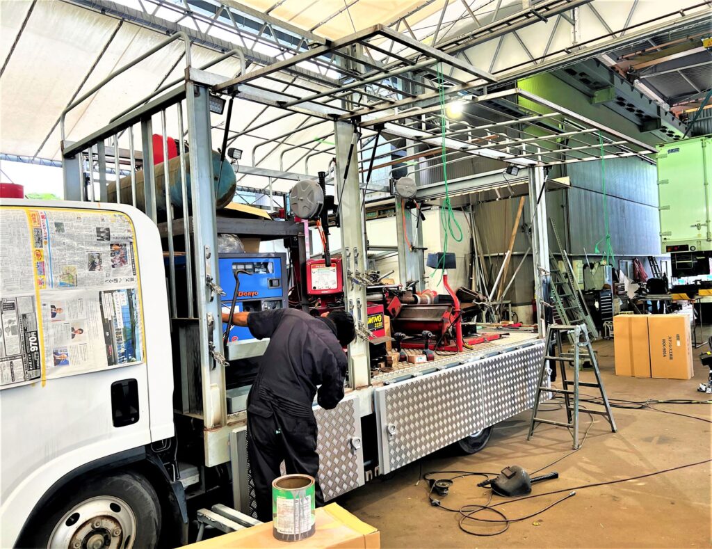 今日は中古車をタイヤ屋さん用に架装、塗装した作業風景の写真をUPしていきます。📸✨✨